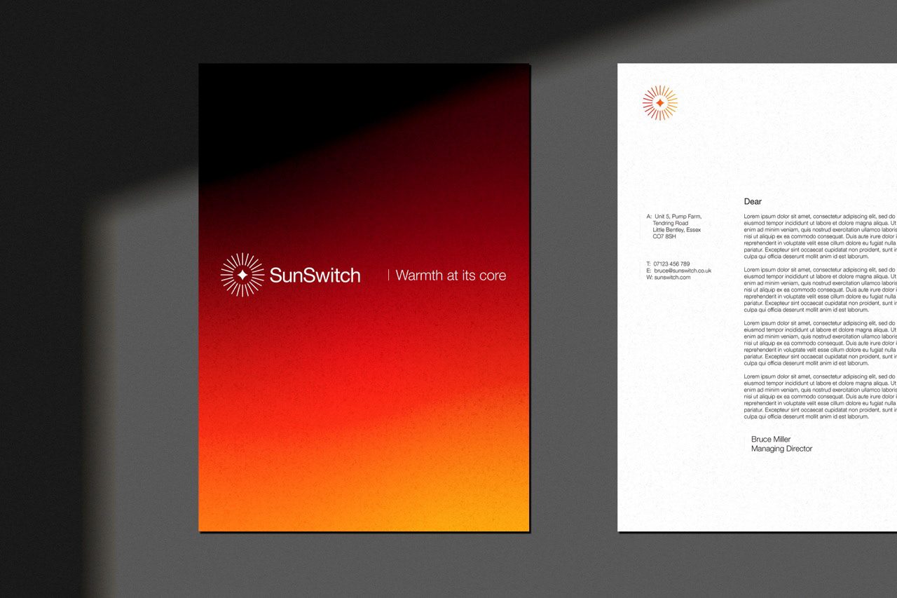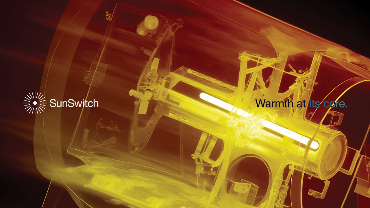 The new SunSwitch brand is confident, modern and flexible – giving the business the tools to express its authority in infrared heating solutions. From logo and messaging to motion and product collateral, every element works together to position SunSwitch as a leader in their category.